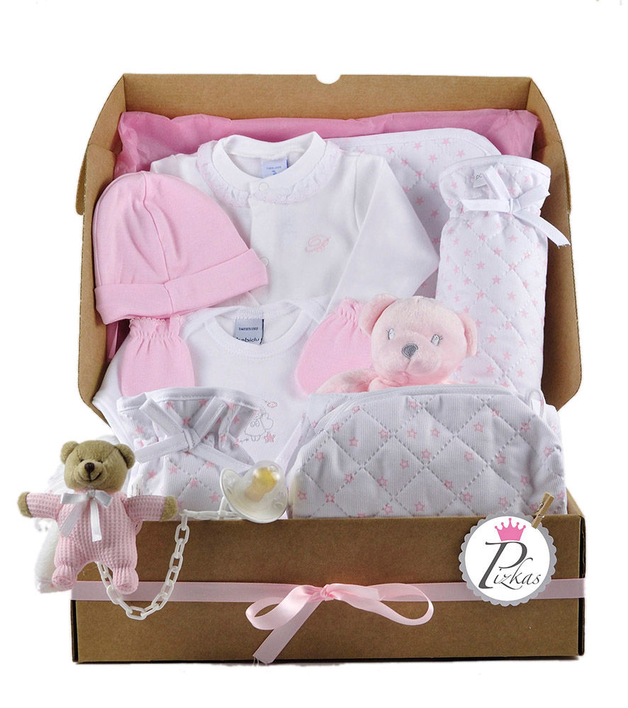 Es una colección muy práctica y de mucho uso durante los primeros meses de vida del bebé. Body interior, mantita, pijama, babero…